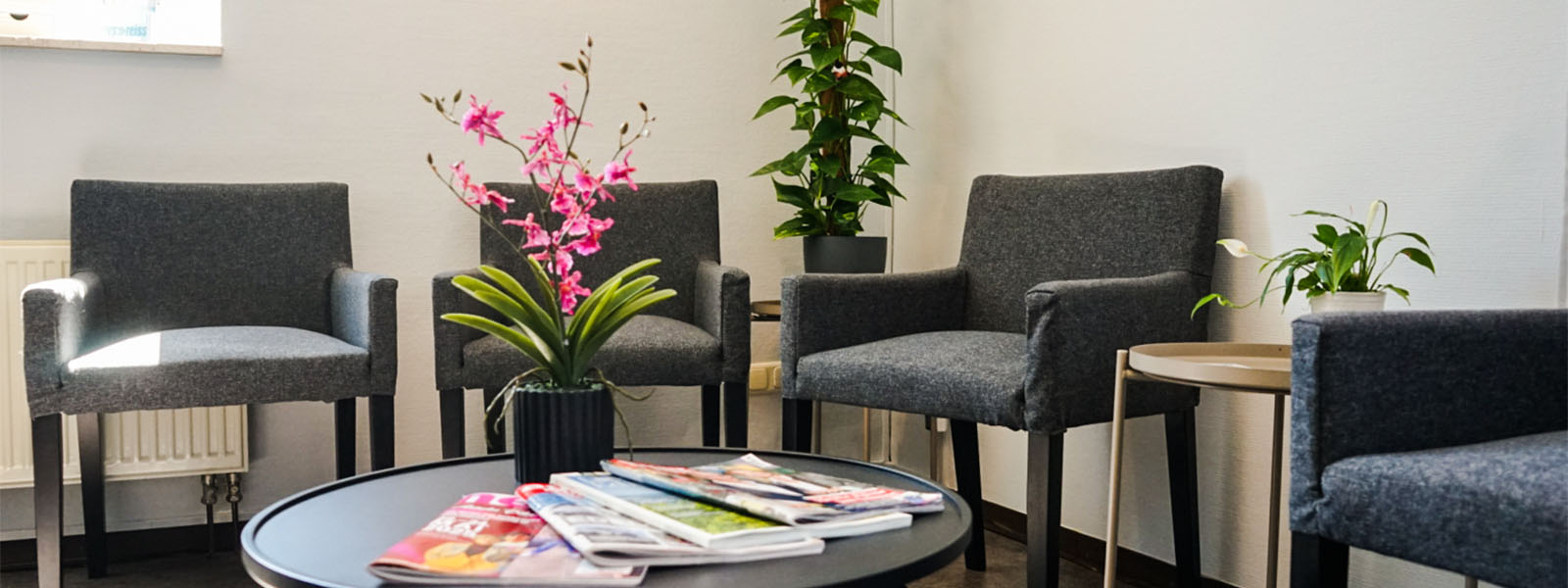 - Barrierefreie Gestaltung: Unsere Praxis liegt im Erdgeschoss und ist komplett barrierefrei. Alle Räume, Flure und die sanitären Anlagen sind großzügig geschnitten. So können sich Rollstuhlfahrer und Menschen mit Gehhilfen ungehindert in unserer Praxis bewegen.